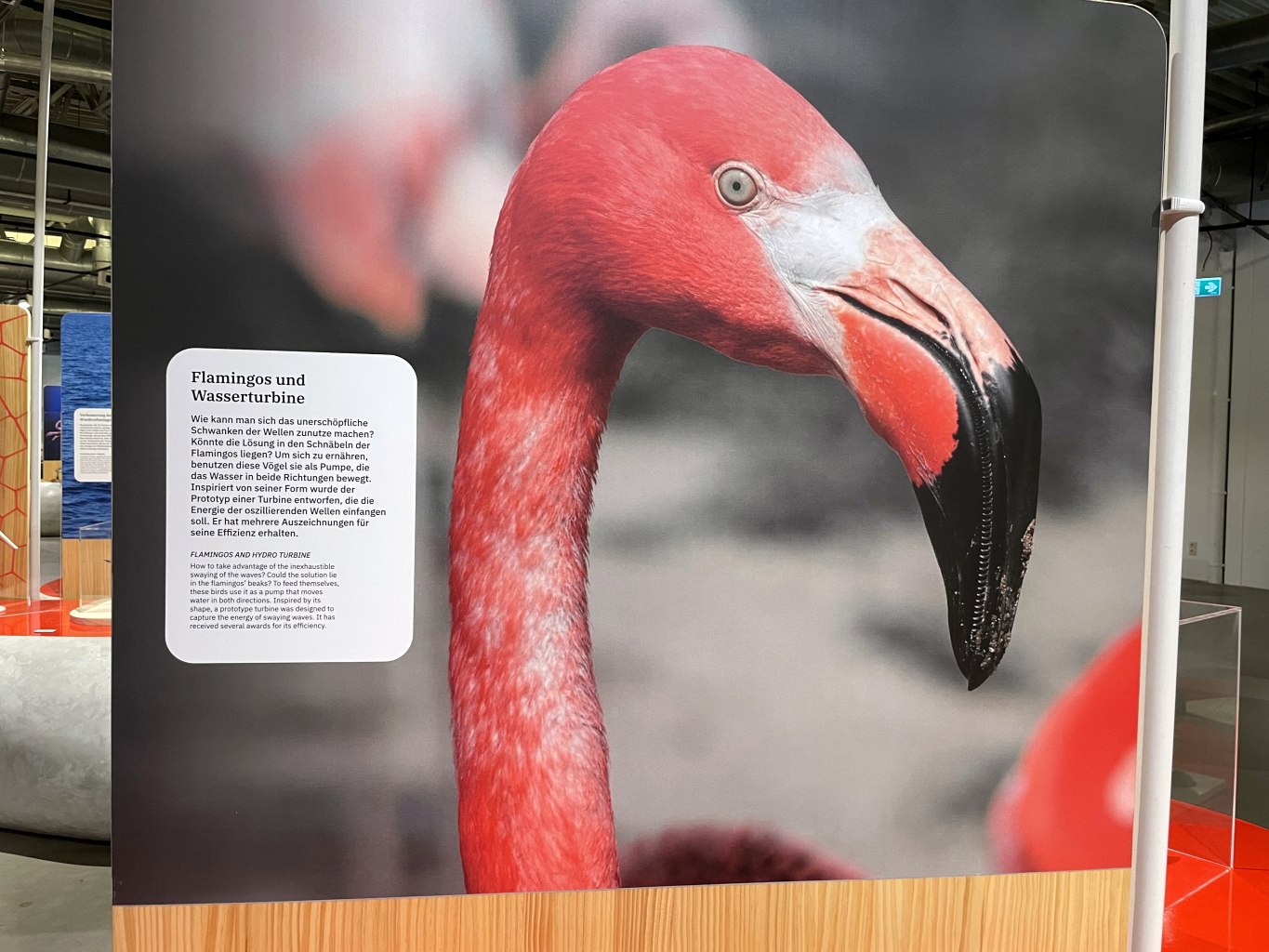 Besonders interessant war die Sonderausstellung BIO.INSPIRATION über die Natur als Vorbild für Ingenieure, die sehr anschaulich zeigt, wie stark sich der Mensch bei seinen Erfindungen an Vorlagen der Tierwelt orientiert hat – siehe Flamingo und Wasserturbine!