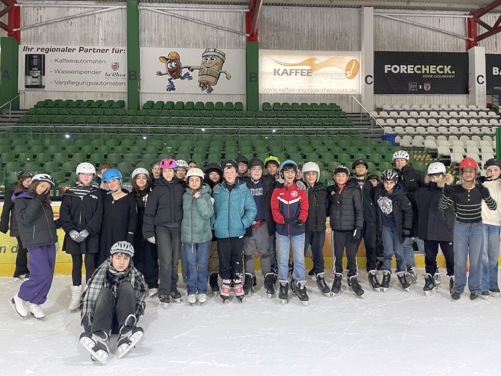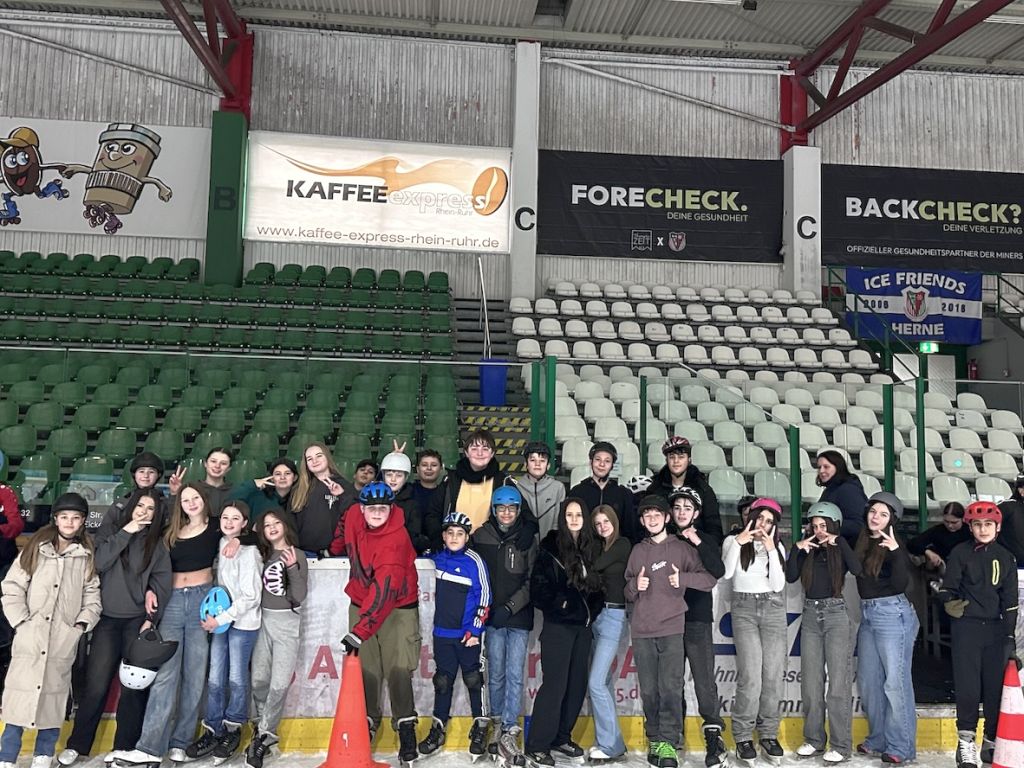 Ein sportliches Highlight erwartete die Schülerinnen und Schüler des 7. Jahrgangs bei ihrem Ausflug in die Eissporthalle am Gysenberg. Im Rahmen des Sportunterrichts und passend zum Lernplanbereich „Rollen, Fahren, Gleiten“ tauschten sie ihre Turnschuhe gegen Schlittschuhe und erlebten einen Tag voller Spaß, Bewegung und beeindruckender Fortschritte.