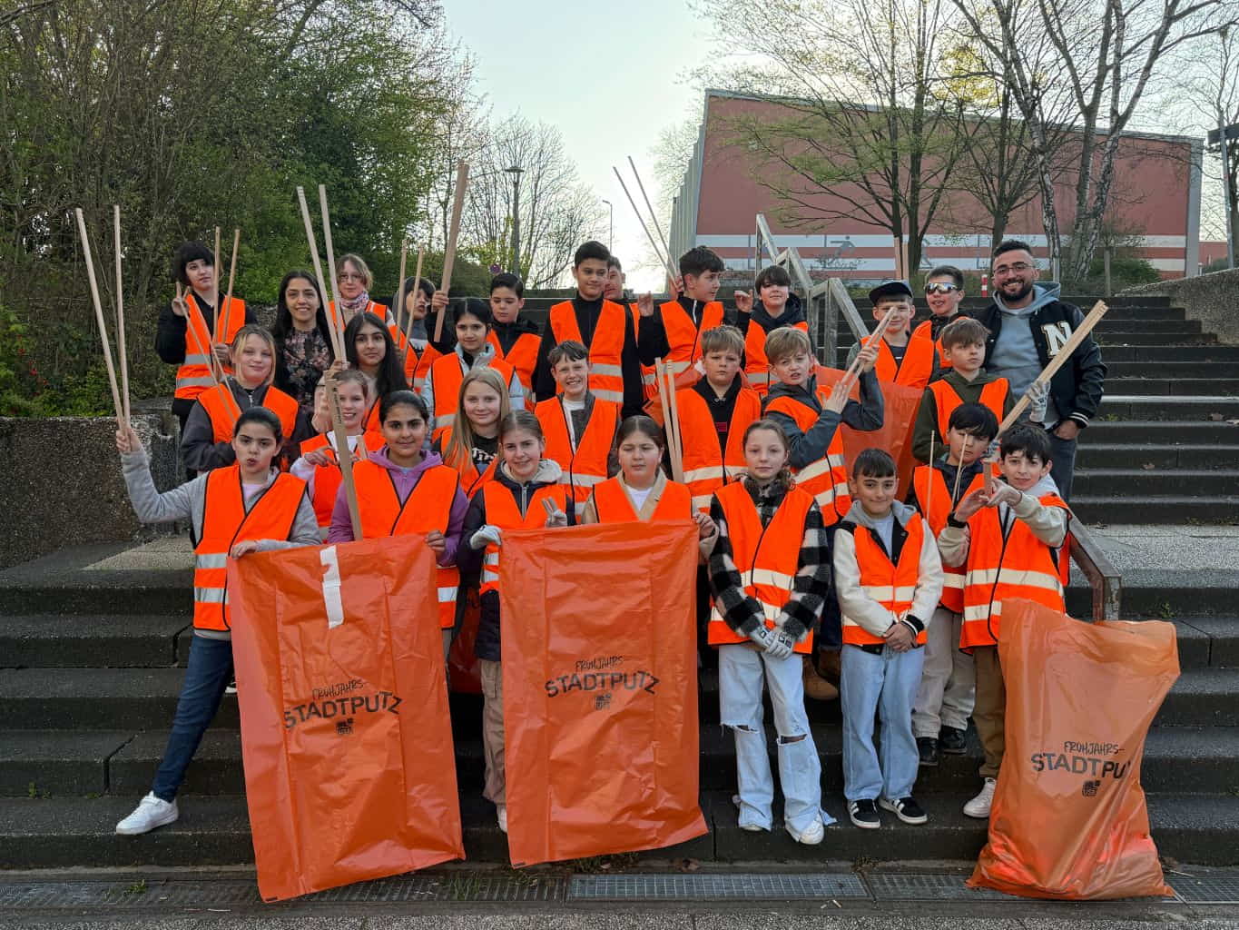 Am 03.04.2025 beteiligten sich dann alle Klassen des 5. Jahrgangs engagiert am Frühjahrs-Stadtputz. Rund um unsere Schule wurde fleißig gesammelt, sortiert und sauber gemacht – mit großem Einsatz und spannenden Funden!