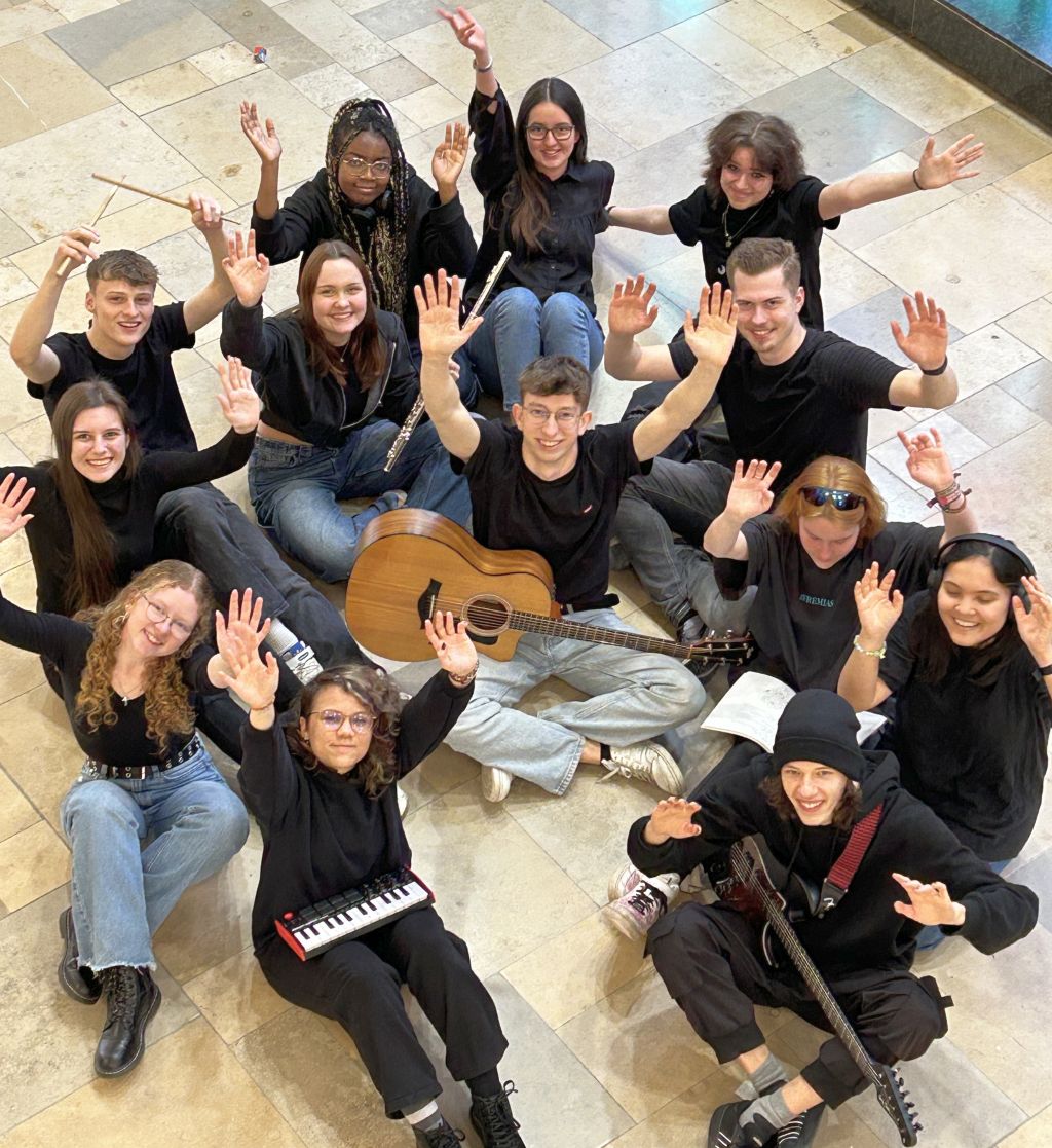 „Jetzt müssen wir aber langsam mal anfangen“, scherze ich nach den Herbstferien 2023 und meine es aber ganz ernst mit dem Musik-Leistungskurs 2023/2024, der knapp ein halbes Jahr später in den Genuss kommen wird, die eigenen Kompositionen live vom Orchester „de ereprijs“ aus Apeldoorn präsentiert zu bekommen. Die 13 Schüler:Innen beginnen, Ideen zu sammeln, Inspirationen zu suchen, sich auszutauschen und Konzepte zu entwerfen. „Spiel‘ doch vielleicht einfach einen Ton, einen Akkord oder eine Tonleiter und schau, ob es dir gefällt“, rate ich auf die Frage, wie man denn anfangen könne. Und aus diesen scheinbar einfachen, kleinen Bausteinen erschaffen die Schüler:Innen nach und nach etwas ganz Großes: ihre erste, eigene Komposition. Ein Werk, das sie für ein Orchester schreiben, zu dem 14 Musiker:Innen gehören, die verschiedenste Instrumente spielen, – Blasinstrumente, E-Gitarre, E-Bass, Klavier und jede Menge Percussion-Instrumente. Die Schüler:Innen sind gespannt, wie das, was sie sich überlegt und über ein Notationsprogramm eingegeben haben, live klingen wird.