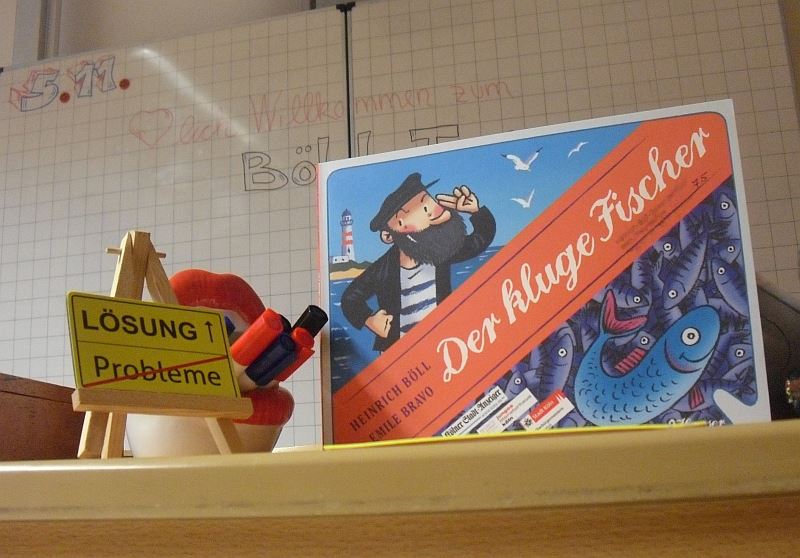 'Anekdote zur Senkung der Arbeitsmoral' – so lautet der Titel einer von Böll 1963 geschriebenen Anekdote, die die Begegnung zweier sehr verschiedener Arbeitsauffassungen beschreibt. Nicht wenig Text für eine siebte Klasse, also auch nicht wenig Arbeit mit einem Text. Für uns als Team der Klasse 7.5 ging es dennoch weniger um einen erweiterten Deutschunterricht als darum, unsere Schüler bewusst sehr persönlich danach zu fragen, warum überhaupt Menschen arbeiten.