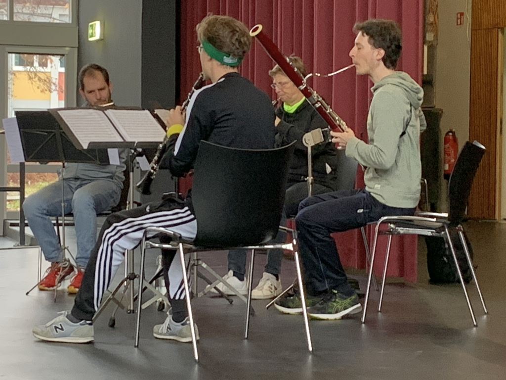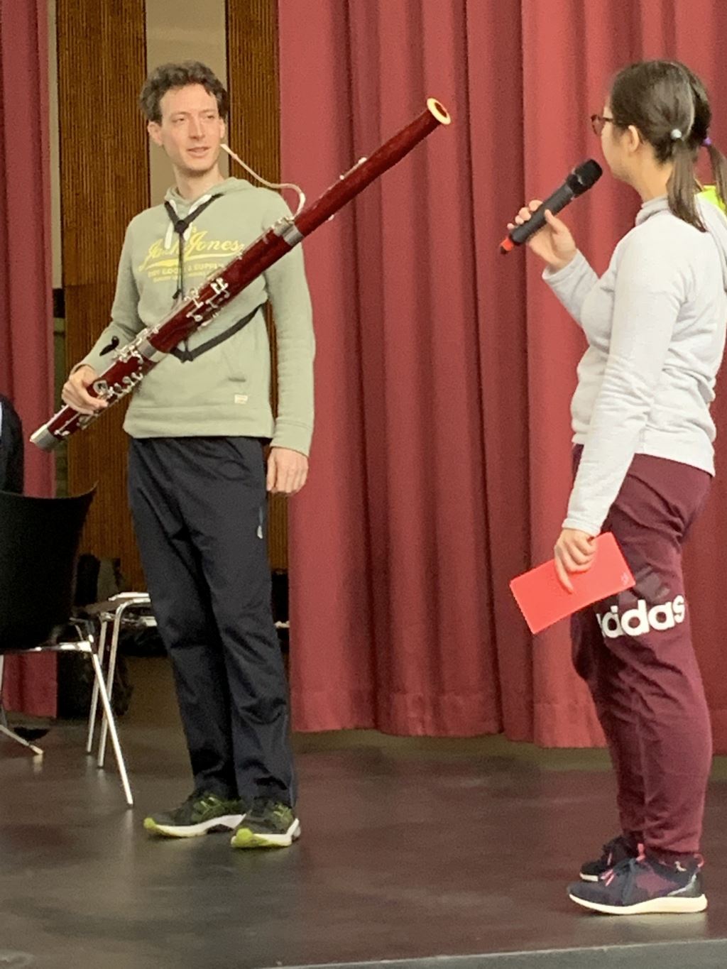 Am Dienstag, 23.11.21, kam es in unserer Agnesaula zu einem außergewöhnlichen Wettstreit: Vier Musiker der Bochumer Symphoniker mit den Instrumenten Flöte, Oboe, Klarinette und Fagott waren zu Gast und kämpften im Sportdress bei einer Holzbläser-Olympiade um Medaillen. Wer kann den höchsten Ton spielen, wer den tiefsten oder längsten, wer kann das Publikum besonders mitreißen?