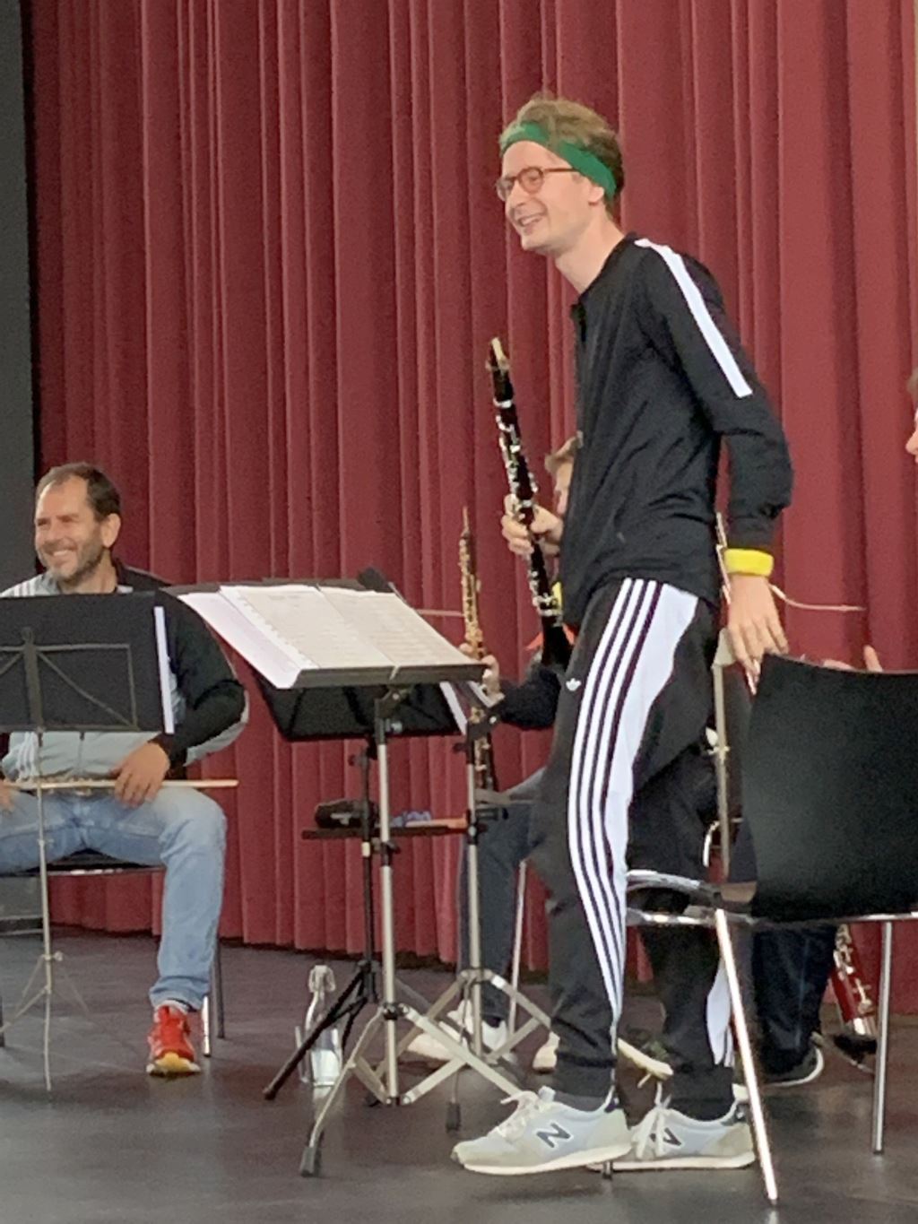 Querflöte und Fagott waren schnell als Spezialisten für die höchsten und tiefsten Töne gekürt. Schon mal versucht, gleichzeitig aus- und einzuatmen? Mit diesem Kunststück demonstrierte uns Anke an der Oboe eine besondere Atemtechnik und ließ den anderen Mitstreitern mit einem nicht enden wollenden Ton keine Chance zum Sieg. Am Ende brachte Nemorino Scheliga die junge Zuhörerschaft mit einem mitreißenden Klarinettensolo so richtig in Schwung. Der große Jubel zeigte, dass er die Medaille für die beste Performance wirklich verdient hatte.