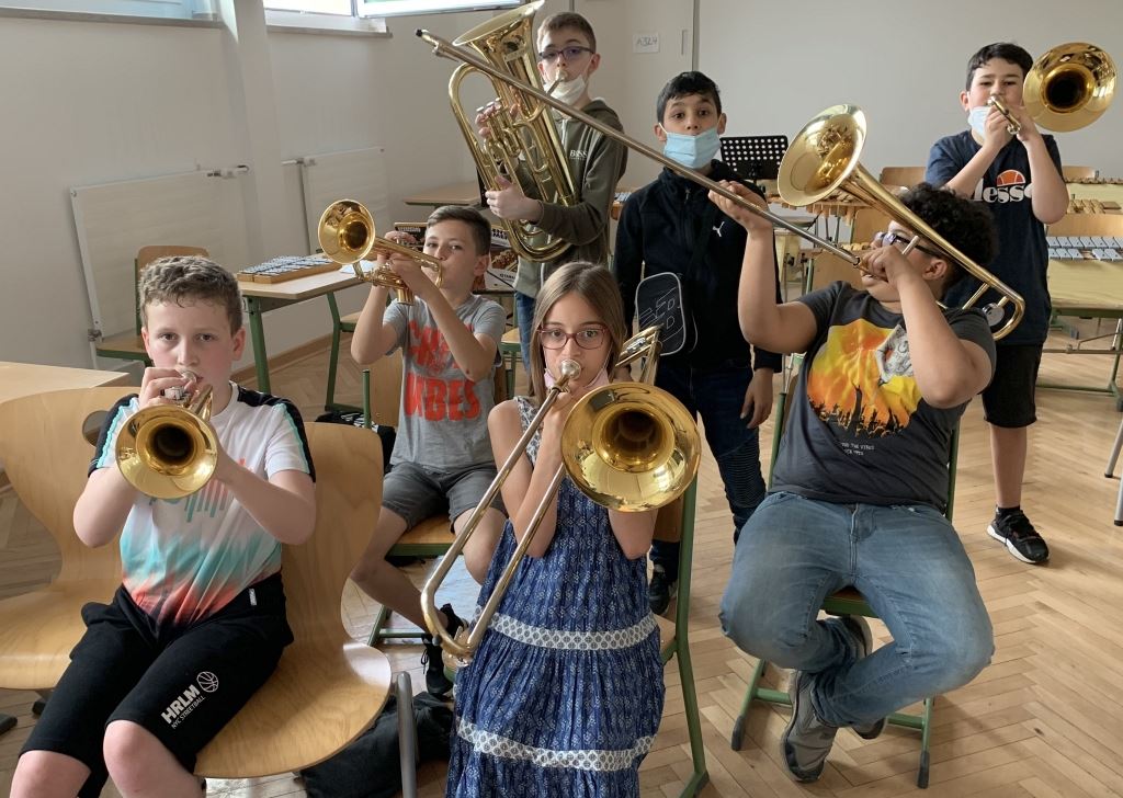 Liebe Eltern, das persönliche Kennenlernen, das normalerweise bei den Infotreffen stattfindet, holen wir nach. Und euch, liebe Musikklassen-Fünfer, wünschen wir viel Spaß mit euren Instrumenten und beim Musizieren in den Orchestern.