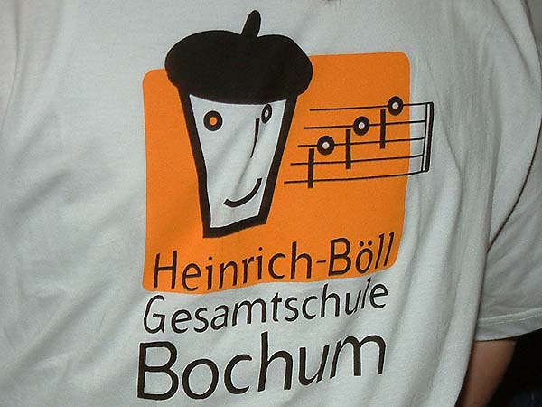 Schul-T-Shirts und Taschen mit dem Böll-Logo erhalten Sie über das Sekretariat im Agnesgebäude (Tel.: 51602-0).