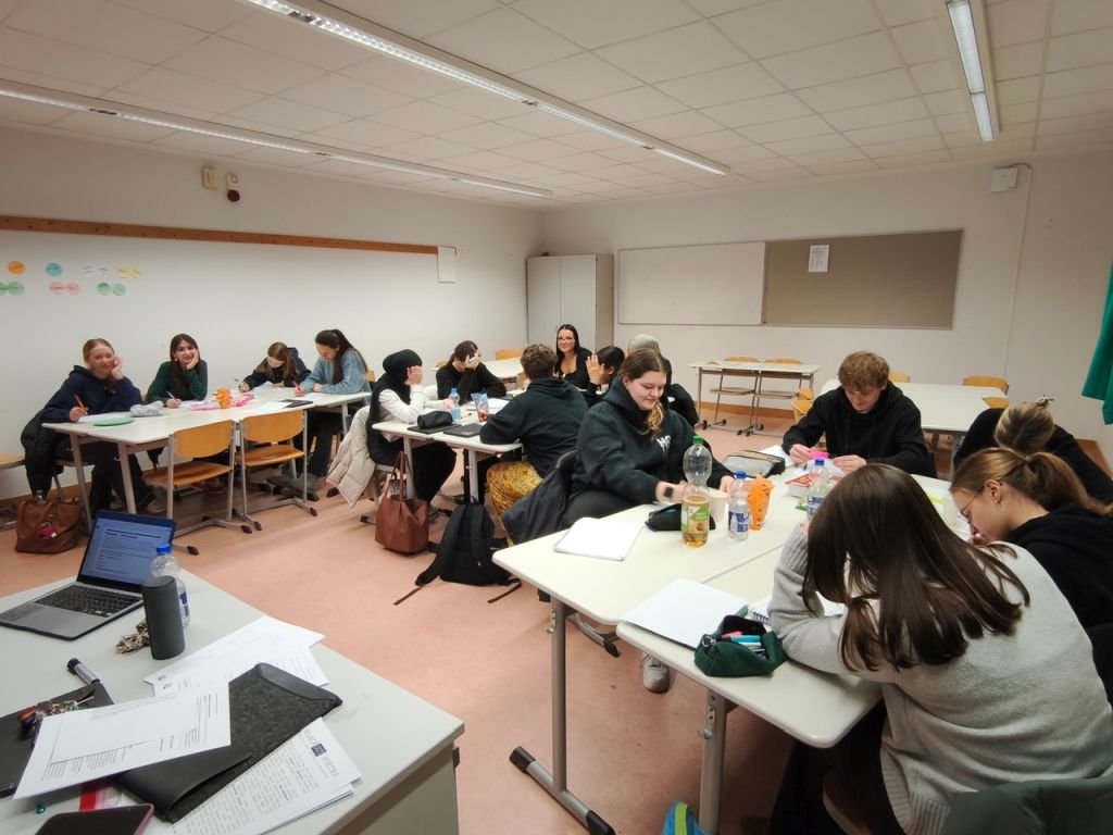 Wahrscheinlich kann man sich etwas Schöneres vorstellen, als den Beginn des Wochenendes abends in der Schule zu verbringen. Nicht so jedoch 45 Schüler*innen unserer Q2, die sich am 6.2. in der Zeit von 18.00 bis 22.00 Uhr in den neuen Oberstufenräumen unserer Schule einfanden, um sich gezielt auf die Aufgabenformate im Abitur mit konkreten Übungsaufgaben und direktem Lehrerfeedback vorzubereiten. Nach einer kurzen Begrüßung konnten die Schüler*innen in zwei Arbeitsphasen in den Fächern Deutsch, Mathe und Englisch ihre Kompetenzen erweitern und Sicherheit für die anstehenden Vorabitur- und Abiturklausuren sammeln. Unterstützt wurden sie dabei von sechs Kolleg*innen sowie sieben Schüler*innen der Jahrgangsstufe 10, die, unter tatkräftiger Unterstützung von Frau Baron und Frau Hoffmann, in einer Arbeitspause die Schüler*innen der Q2 mit selbstgebackener Pizza versorgten.