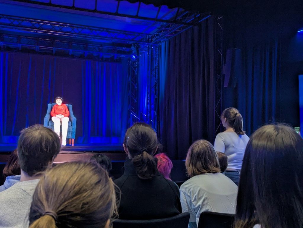 Wir durften heute ein interaktives Interview mit dem Hologramm von Inge Auerbacher führen und bekamen dank modernster Technik authentische Antworten auf unsere Fragen.