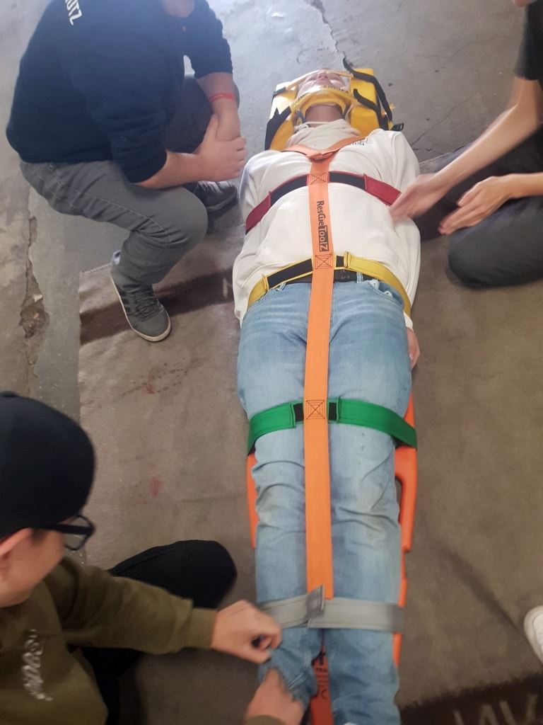 Die Schüler*Innen Lisa, Florian, Nico und Fynn aus der Schulsanitätsdienst AG ließen sich in einem 60-stündigen Lehrgang zu richtigen Sanitätern ausbilden. Über zwei Monate lang führte sie ihr Weg jedes Wochenende nach Bochum-Wattenscheid zum DRK-Kreisverband. Hier lernten und übten sie zum Beispiel das Durchführen von lebensrettenden Sofortmaßnahmen sowie das Versorgen von bedrohlichen Blutungen.