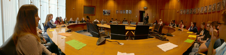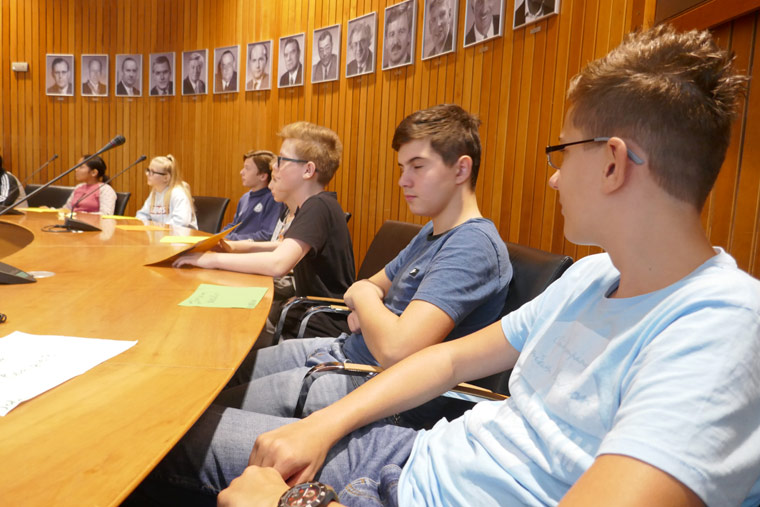 Danach wurden wir in das Besucherzentrum gebracht, wo wir eine Debatte zum Thema " Wahlrecht ab Geburt " abhielten. Es waren noch andere Schulen da. Wir erfuhren, dass so eine Debatte genauen Abläufen und Regeln folgt, die unbedingt eingehalten werden müssen.