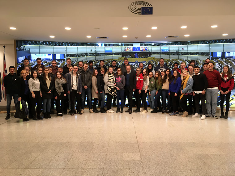 In Brüssel am Europäischen Parlament angekommen, wurden wir von Frau Arzu Mouchtar, die Leiterin des Abgeordnetenbüros des EU-Abgeordneten Prof. Dr. Dietmar Köster, empfangen, die uns nach Durchqueren der Sicherheitskontrolle Einblicke in den Plenarsaal gab. Anschließend begleitete sie uns in einen Konferenzraum, in dem uns der Parlamentarier Prof. Dr. Dietmar Köster für ein einstündiges Gespräch empfing, innerhalb diesem er den Schülerinnen und Schülern eindrucksvoll von seiner Tätigkeit als Parlamentarier berichtete und uns die Grundidee Europas noch einmal vergegenwärtigte. Da unsere Schülerinnen und Schüler großes Interesse zeigten, bot Herr Köster an, zu einem Expertengespräch in die Schule zu kommen. Sein Angebot werden wir sicherlich in Anspruch nehmen.