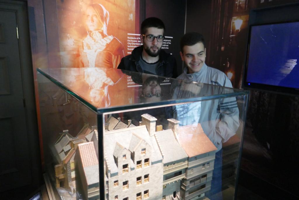 Am ersten Tag waren wir sehr aufgeregt, weil wir uns zuerst die Frage stellten, wie das Leben in Edinburgh aussehen würde. Nach dem einstündigen Flug mussten wir mit dem Bus zu unserem Hostel fahren und zunächst unsere Koffer in unsere Zimmer bringen. Später zeigten uns Herr Berg und Frau Rossi die wundervolle Stadt, Old Town. Dort empfiehlt Herr Berg sehr viele Läden für Geschenke und Essen.
