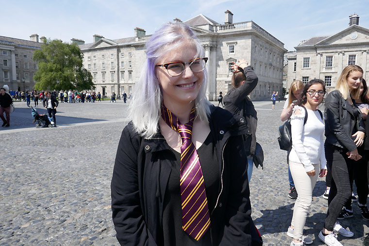 Erster Höhepunkt des Dublin-Aufenthaltes war der Besuch des Trinity-Colleges. Hier gab es das legendäre "Book of Kellls" und die uralte, wunderschöne Bücherei zu bestaunen, die auch Drehort war: Harry Potter wurde hier gedreht. Viele hatten das Gefühl, schon einmal dort gewesen zu sein. Und eine Schülerin Anna, hatte sogar das passende "Hermine-Outfit" dabei.