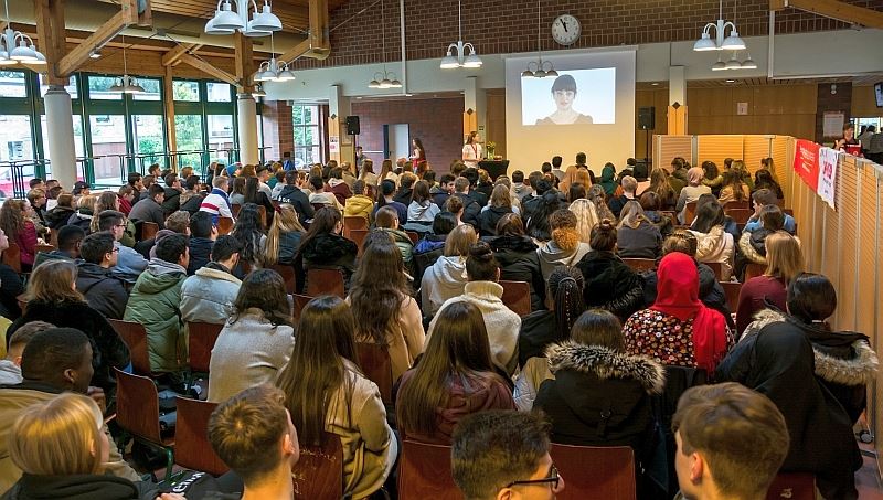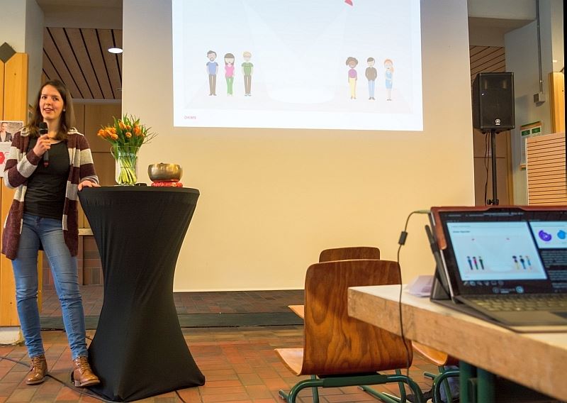 Alle 15 Minuten wird in Deutschland ein Mensch mit der schockierenden Diagnose " Blutkrebs" konfrontiert, darunter sind viele Kinder und Jugendliche. Über neun Millionen Freiwillige haben sich bislang schon bei der DKMS registrieren lassen, aber jeder einzelne wird gebraucht, da nicht nur die Blutgruppe übereinstimmen muss. Frau Wenzel, die von der DKMS gekommen war, informierte sehr beeindruckend die Oberstufenschüler und -schülerinnen der Q1 und Q2, aber auch viele Schüler und Schülerinnen der EF. Lea Brohson konnte lebhaft und gut nachvollziehbar als Echtspenderin erkären, was passiert, wenn man als Spender ausgewählt wird. Sie schilderte aber auch Ängste und Befürchtungen und das Glück, wenn man Lebensretter für einen anderen Menschen sein darf.
